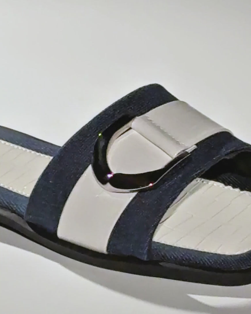 Introducing the Sky Buckle Two Tone Slippers! Experience ultimate comfort and style with these premium slippers. The sleek two-tone design adds a touch of elegance, while the sky buckle detail provides a secure fit. Perfect for lounging at home or running errands, these slippers are a must-have for any fashion-forward individual. Elevate your everyday life with the Sky Buckle Two Tone Slippers!