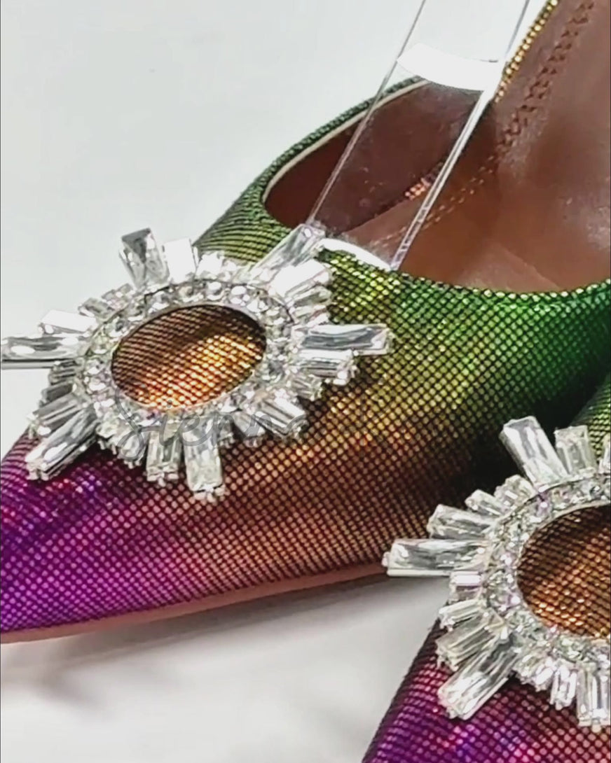 Desideria Rhinestone Slingback Flared Heels In Multicolor